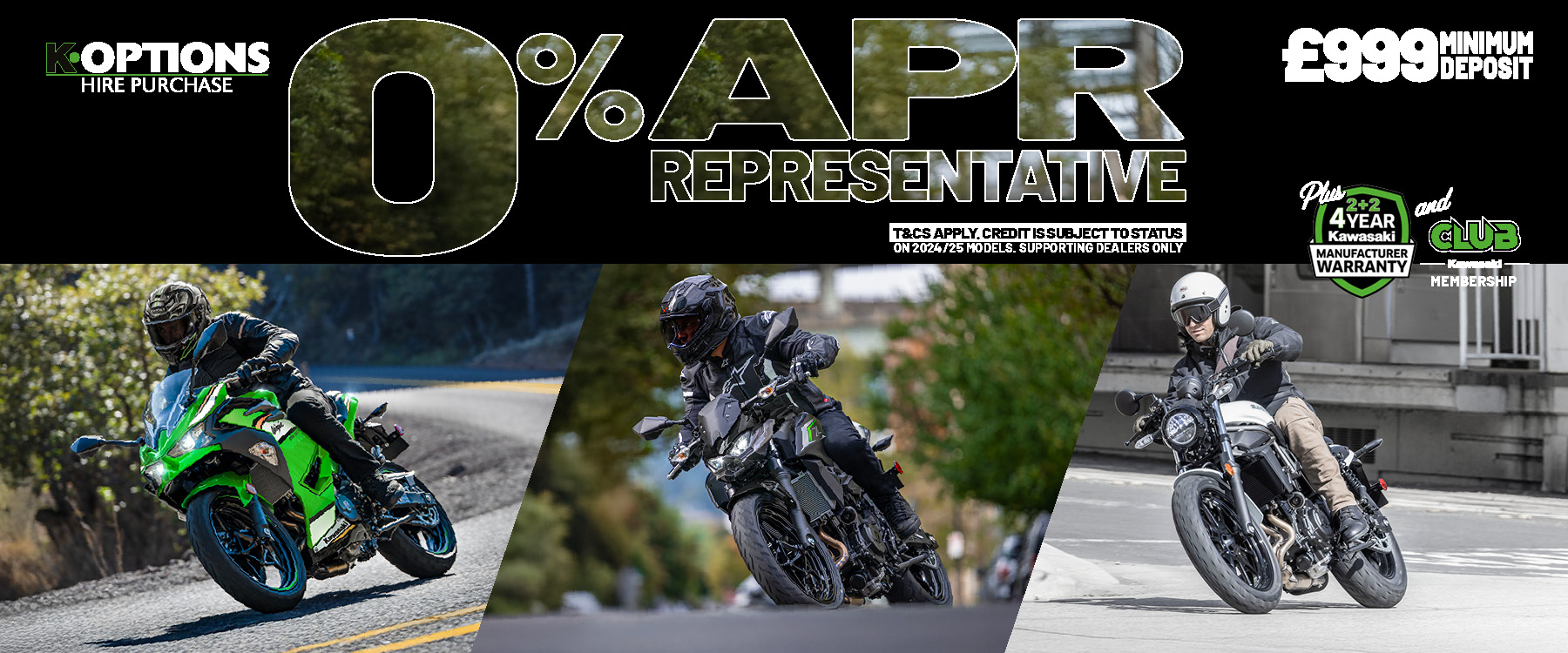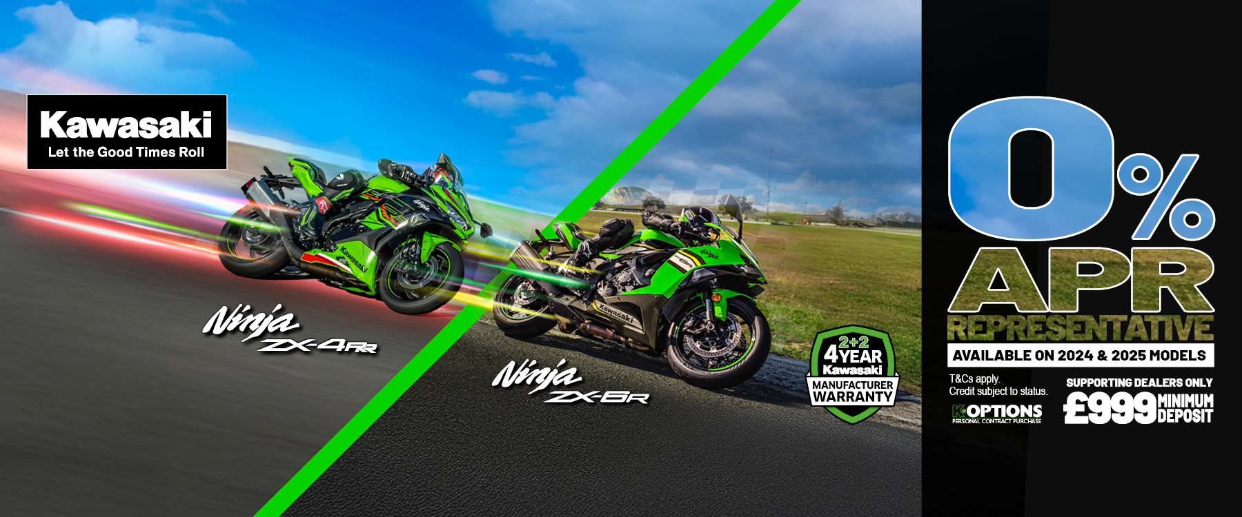 Enjoy 0% HP and 5.9% PCP on a wide range of Kawasaki machines!