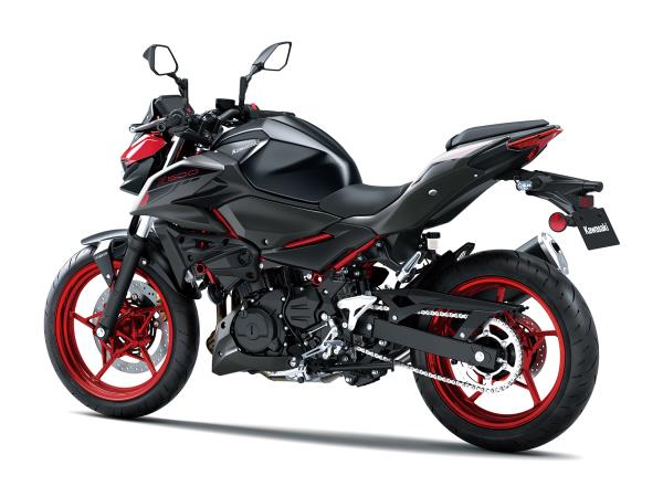 The new Z500 has a sharp, aggressive style and retains the large-volume design of other bikes in the Z series to create an aggressive, agile, street-oriented look. Its muscular, athletic bodywork reflects its performance while forming a flowing design that appears to float above the engine. Like other models in the Z Series, sugomi design elements (crouching stance, lowpositioned head and upswept tail) give it a silhouette instantly recognisable as a Kawasaki Supernaked.