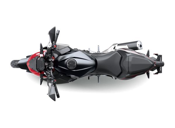 The chassis has a supersport-style short-wheelbase/longswingarm design, complemented by an optimised trail setting that delivers light, natural handling. The bike’s light weight also contributes to the easy handling and facilitates manoeuvring when off the bike, such as when parking.