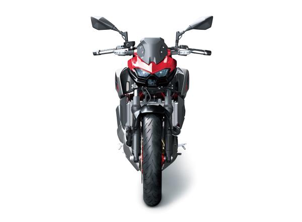 No matter from what angle the Z500 is seen, its triple headlightcentred front face and aggressive lines make it clear that this is a member of the Z family, with aggressive Supernaked looks and ample street presence.