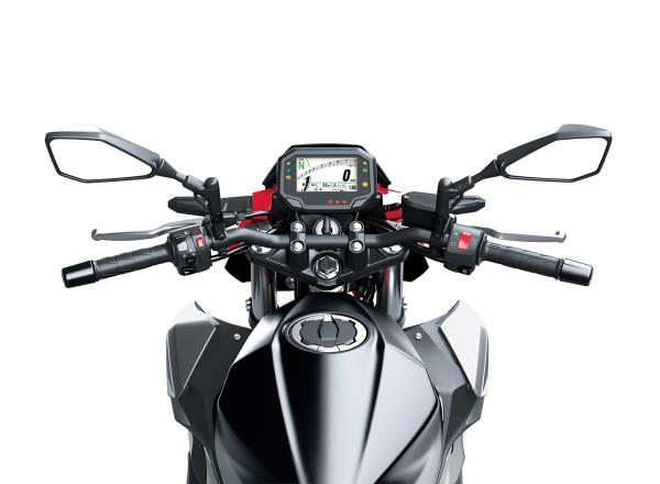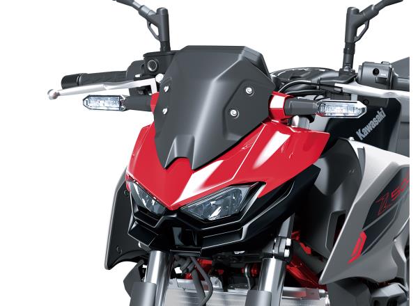 The Z500’s “face” is based around a newly designed triple headlight unit, enveloped by a sharp front cowl to give it an intense look.