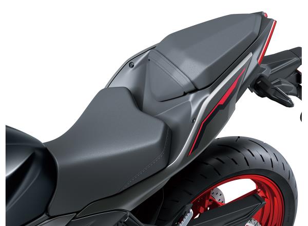 While seat height is 785 mm, the slim design of both the seat and the rear of the engine gives riders an unobstructed line for their feet to reach the ground. The seat’s flat shape offers ample padding in the front portion without sacrificing the comfortable reach to the ground, which helps riders enjoy the bike with confidence.