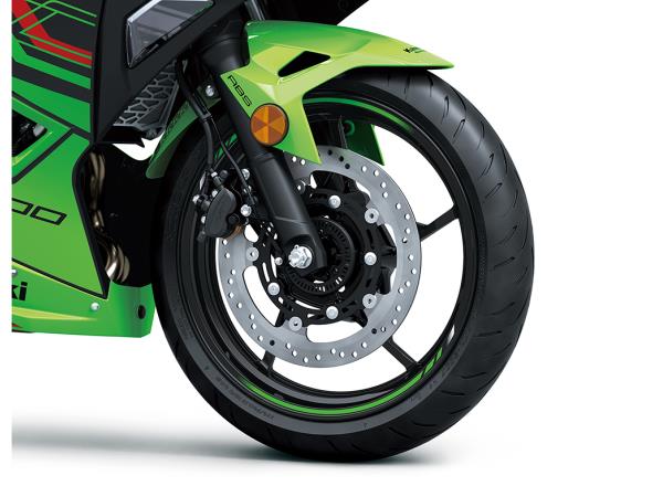 Measuring ø310 mm, the Ninja 500’s semi-floating front disc offers sure stopping power with the added reassurance of ABS.