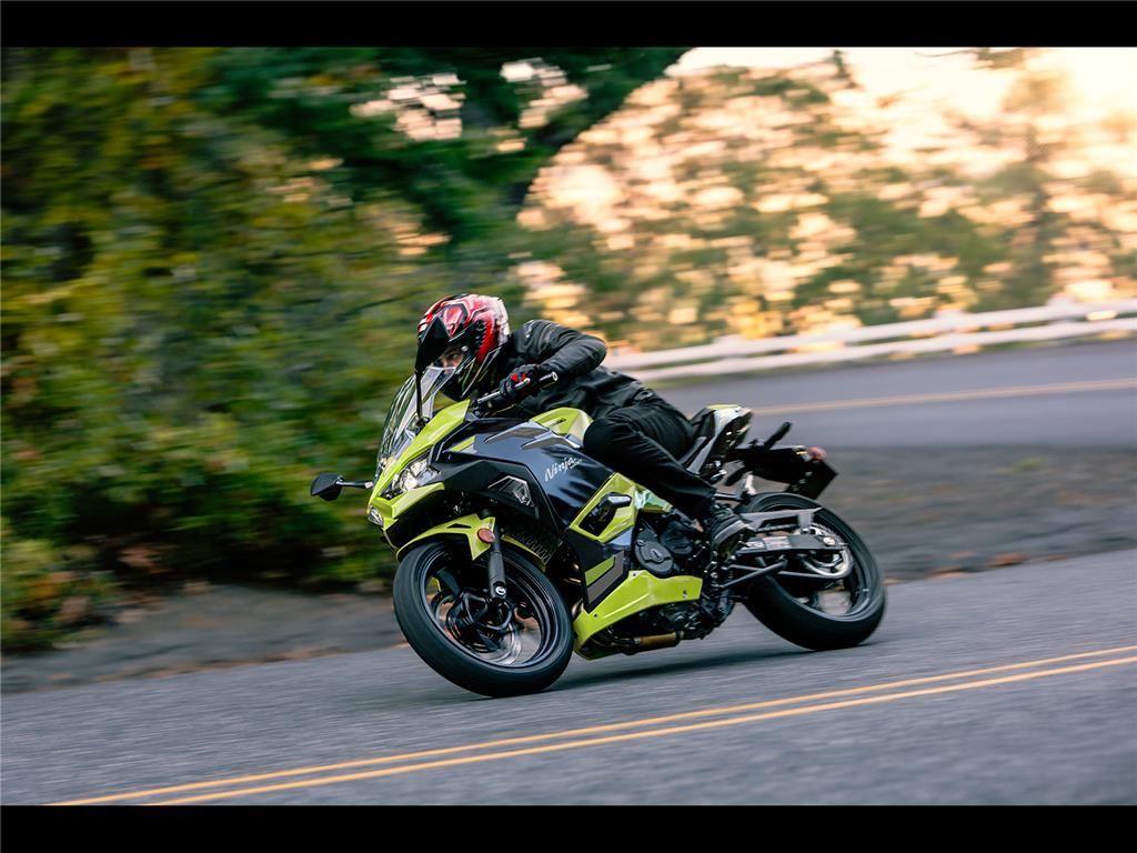 The power available from the 451 cm3 engine is found through the entire rpm range to make it easy for riders to use, no matter what kind of riding they are doing, from low-end power for accelerating off the line in the city to top-end revs for riding on the highway. The engine in the new Ninja 500 is up the task, no matter what it may be.