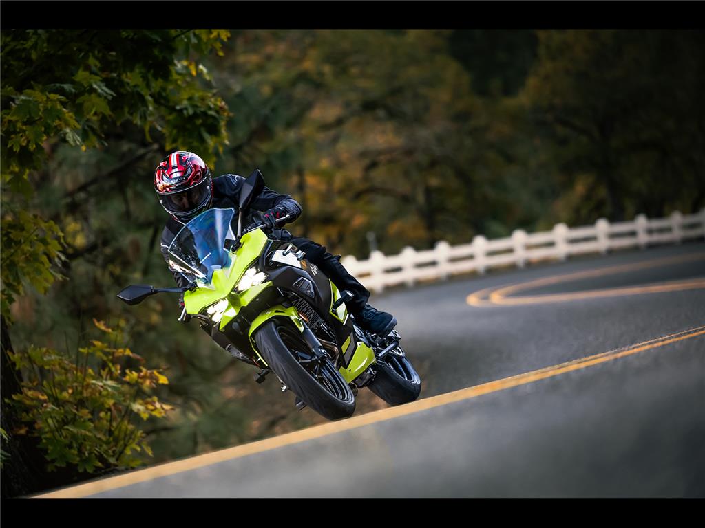 Moving from front to rear with a flowing, layered design, the bodywork on the new Ninja 500 offers a fresh impression, while sporty elements give the machine a purposeful, race-inspired look that owners will be proud to own and show off.