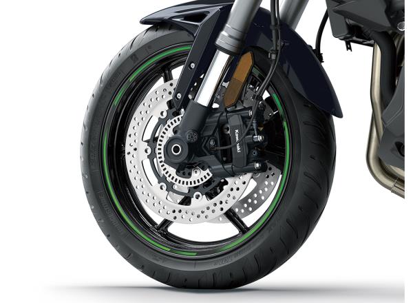 The long-travel suspension’s ability to cope with less-than-perfect street conditions allows the Versys 1100 to remain composed on many kinds of roads. Lightweight 17” wheels front and rear contribute to quick, sporty handling.