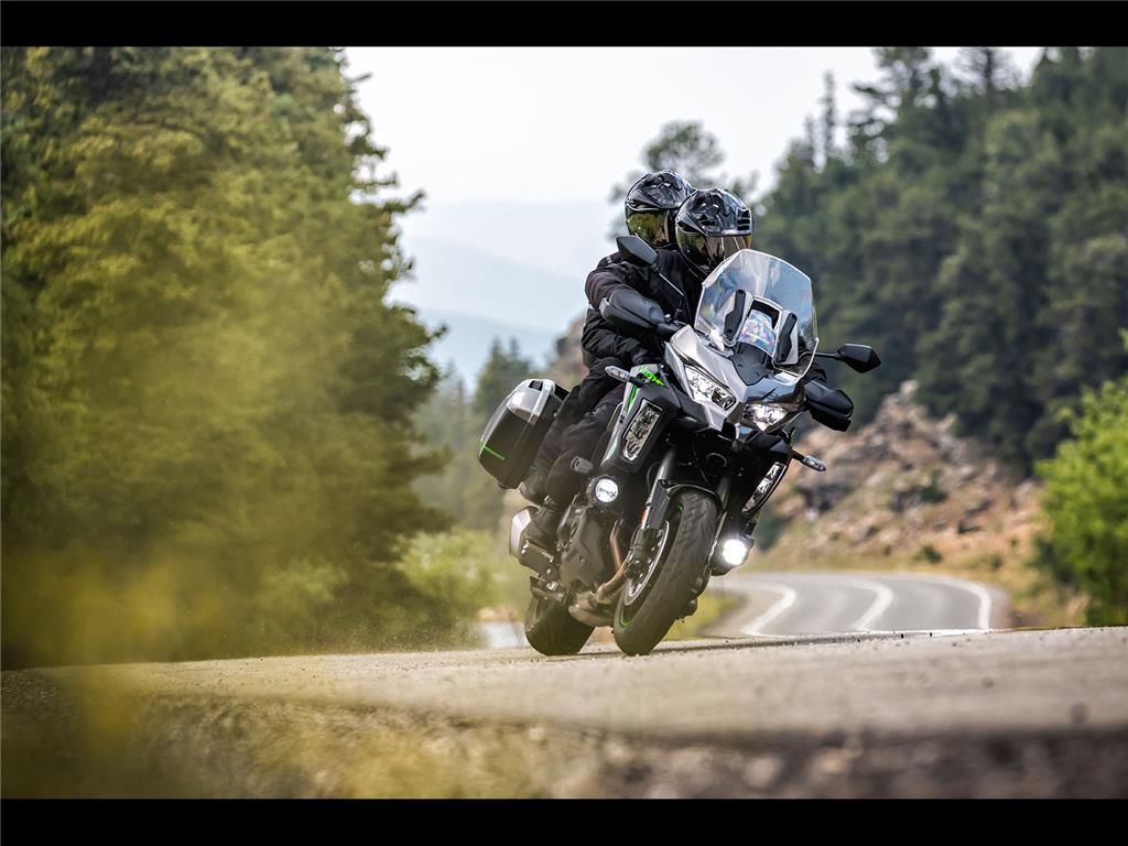 Not only is the Versys 1100 exciting to ride, but it also offers the comfort and carrying capacity to allow riders to ride long and far. A highly comfortable seat and good wind protection complement the relaxed riding position, making it easier to spend a long time in the saddle. Passenger comfort is also superb, making it easy to share the fun. Long-travel suspension capably handles a wide range of road conditions, adding to rider confidence, while on the SE model, electronic suspension with Skyhook Technology further contributes to ride comfort for both rider and passenger. A high payload can accommodate panniers and a top case simultaneously, and numerous accessories add to comfort and convenience – especially welcome on multi-day trips.