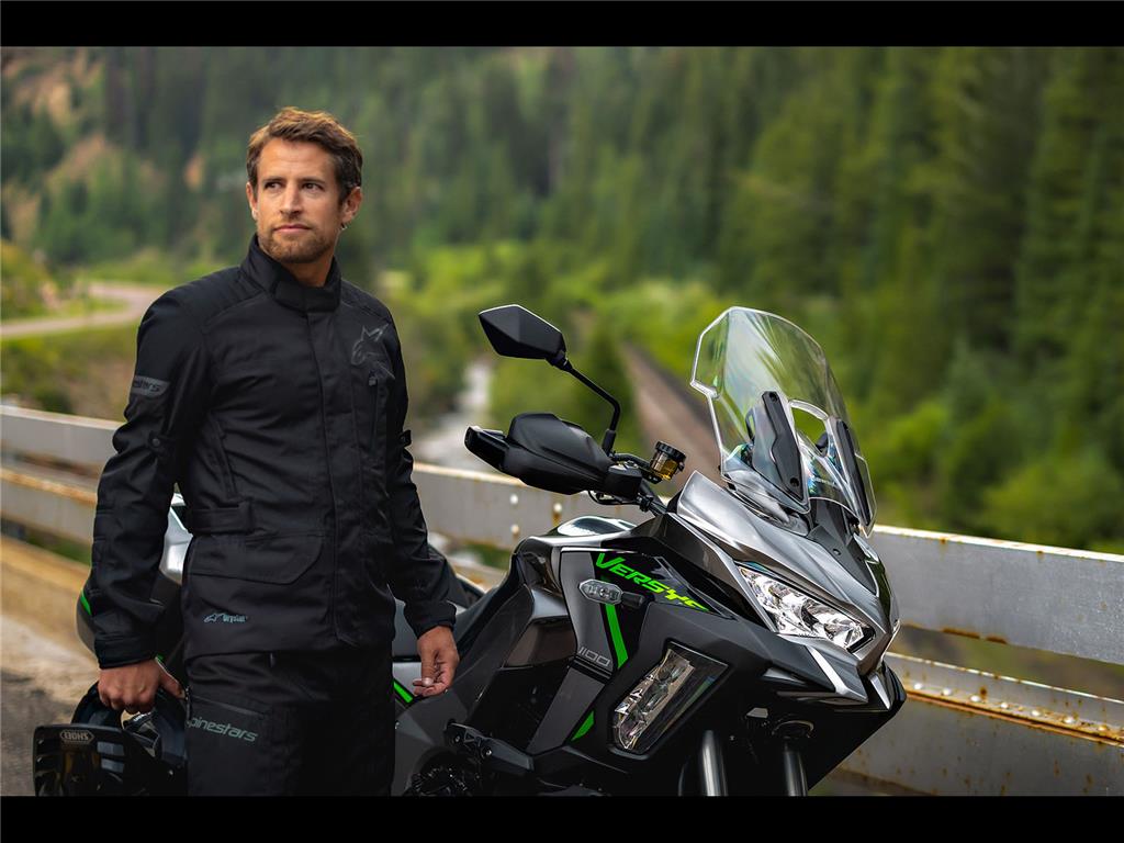 The Versys 1100’s bodywork has flowing lines that lend a sporty look while offering both rider and passenger excellent wind protection, contributing to long-distance ride comfort.